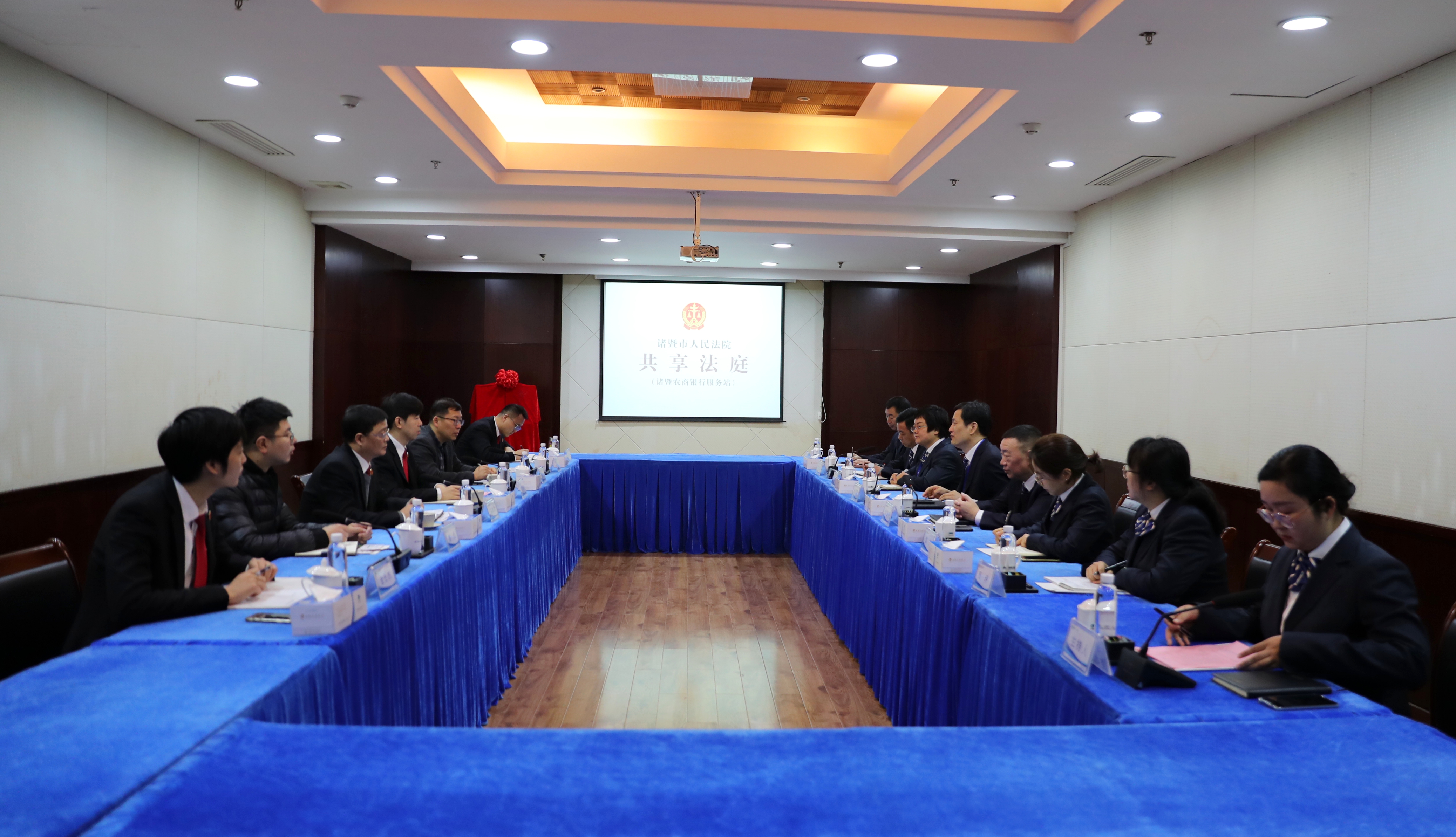 陈键院长和吴智晖董事长为金融“共享法庭”诸暨农商银行服务站揭牌。未来,我行将与诸暨市人民法院共同携手,进一步发挥组织优势、服务优势和资源优势,突破时空限制,将司法服务功能延伸至金融机构网点一线,打通便民服务的“最后一公里”。